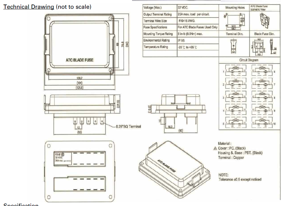 Une boîte à fusibles anti-éclaboussures à 10 et couvercle avec indicateurs LED pour indiquer une rupture de fusible.